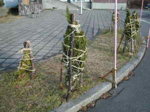 | 植木を雪から守るため。 | 八甲田山に雪が降ったら、かなりの雪が積もるんでしょうね。 |